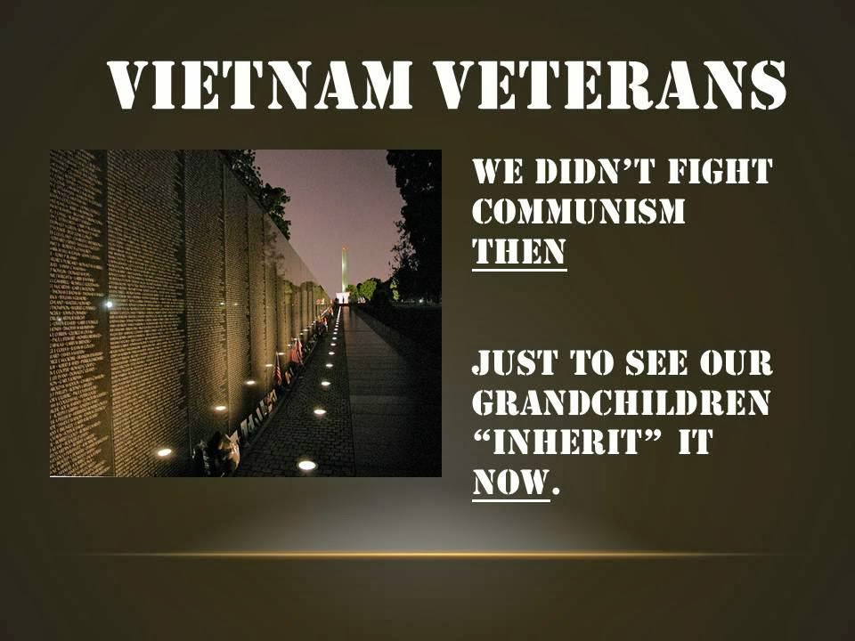 Vietnam was the last time we went Weapons Hot with the Communists. It was a just war, intended to contain the Communists who were expanding everywhere.